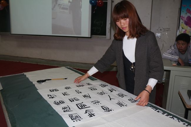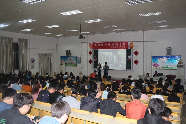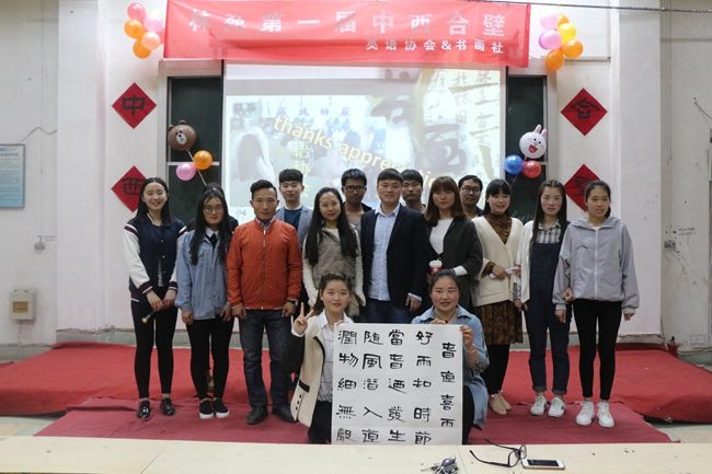 4月5日晚,我院2017年校园文化沙龙系列活动在西阶梯成功举办第三期,由我院团委主办社团联合会承办,由英语协会与书画社共同带来了“中西合璧”主题互动表演,此次活动邀请到了车电系老师王龙龙、郭帅冰,经贸系辅导员盛夏瑜到场观看节目。