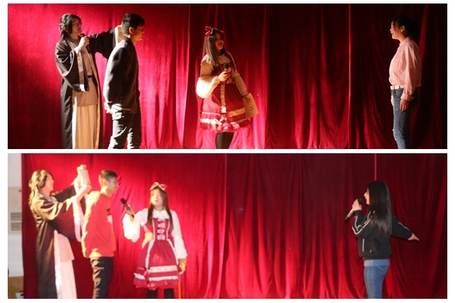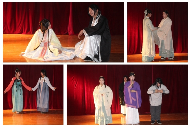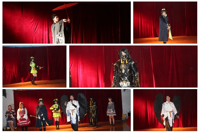 经过动漫社与梨园社不断创新与磨合,社员们大胆尝试将动漫与古典文化节目相融合。4月11日晚7:30终于将准备已久的晚会呈现在师生面前,当然活动也吸引到团委副书记王杰、袁光涛老师到场观看节目。