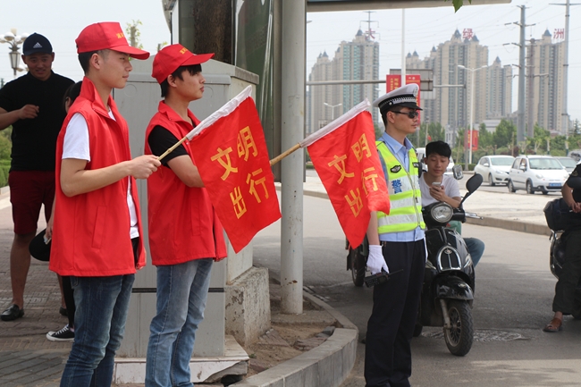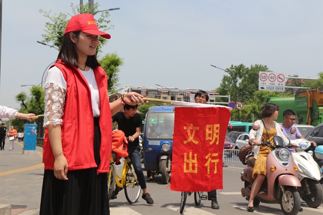 文明交通助岗 志愿者在行动 作者:王杰 来源:团委 发布时间:2017-05-11 10:30:05 浏览次数: 次 【字体:小 大】 5月10日下午12:00到16:00,院团委组织志愿者在启明南路中州路口参加文明交通助岗活动,协助交警同志指挥道路交通,减免交通事故的发生。志愿者们头顶烈日,积极、热心的志愿服务,得到了交警同志和过往行人的认可和赞扬。我院志愿者用自己的实际行动诠释了“志愿者”的内涵,用辛勤汗水助力文明交通,身体力行助推文明城市建设。 分享到: 【打印正文】