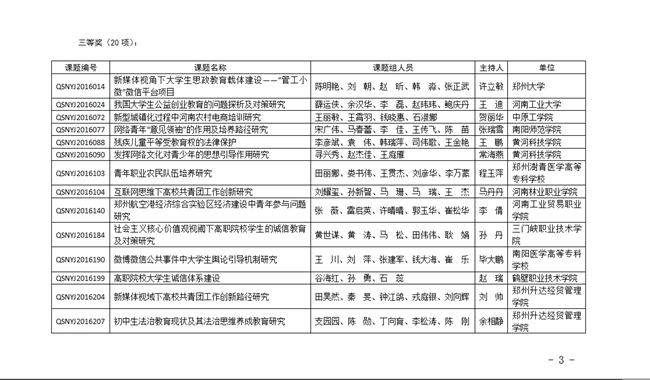 近日,共青团河南省委、省社科联联合下文(豫青联字【2017】12号)表彰了关于2016年度专项调研课题(青少年研究)的获奖项目,由我院团委书记马丹丹主持,刘耀玺、孙新智、马珊、马瑞、王杰老师参加的《互联网思维下高校共青团工作创新研究》调研课题喜获三等奖。据悉,2016年度共青团河南省委、省社科联共确立专项调研课题(青少年研究)近300项,此次仅有50项课题受到表彰,我院团委榜上有名。