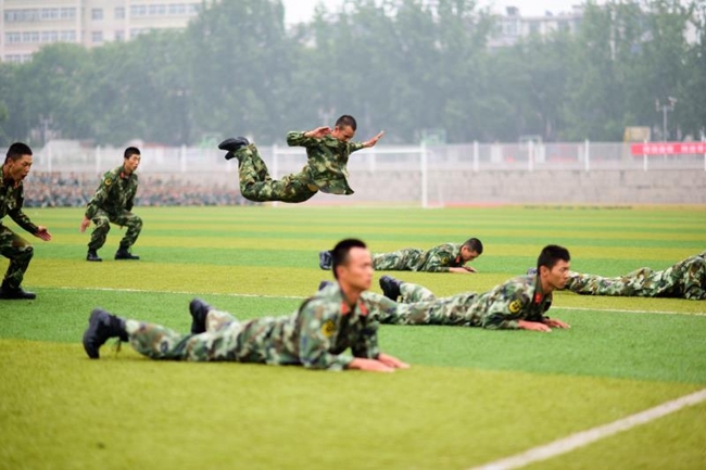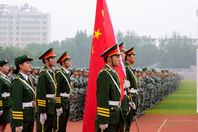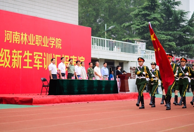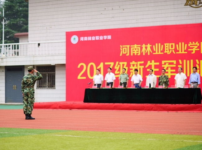 9月29日上午,我院2017级高职学生军训会操表演在运动场隆重举行。瀍河回族区人民武装部部长徐永建、承训部队武警128师384团作训参谋高月文应邀出席,学院党委书记吴国新、院长宋宏伟、副院长刘宗利、路买林、刘耀玺、纪委书记葛祖鸣出席观看了会操。军训会操由团委书记马丹丹主持。