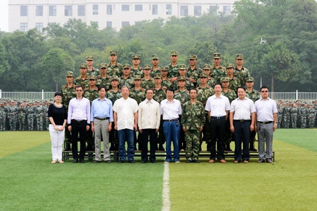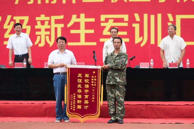 在热烈的掌声中,吴国新书记向承训部队赠送“军校携手育英才 友谊长存谱新篇”锦旗。大会结束后,刘耀玺副院长代表学院与承训部队领导和官兵亲切话别,并再次向他们表示最诚挚的感谢!