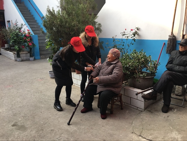 2017年12月2日上午,生态系的志愿者们利用周末休息时间来到福乐门敬老院,看望那里的孤寡老人。同学们自发的购买了水果、面包,陪老人们聊天,帮助他们整理内务,打扫卫生。在这个寒冷的冬天,同学们用自己的实际行动和热心给敬老院的孤寡老人们带来温暖。