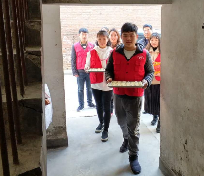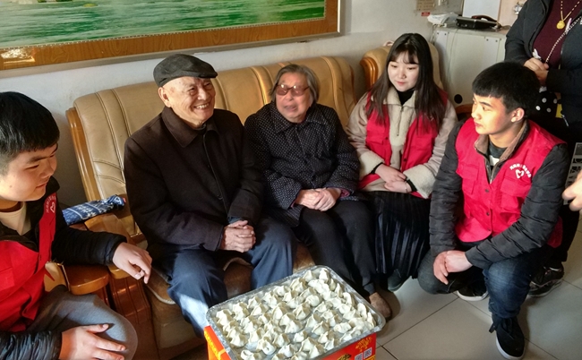 12月22日,是传统24节气的冬至,园艺1731班团支部在学院老干部处和团委老师们的带领下,带着同学们刚刚包好的饺子和点心到南家属院看望我院退休老教师。同学们分别走进退休老干部方艾和张天合家中,向老教师们送去了节日的祝福,亲切地称呼"爷爷""奶奶"并希望他们能够在生活中保重身体,多来学校看看。