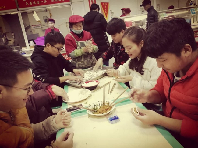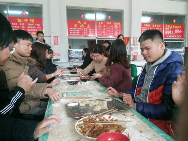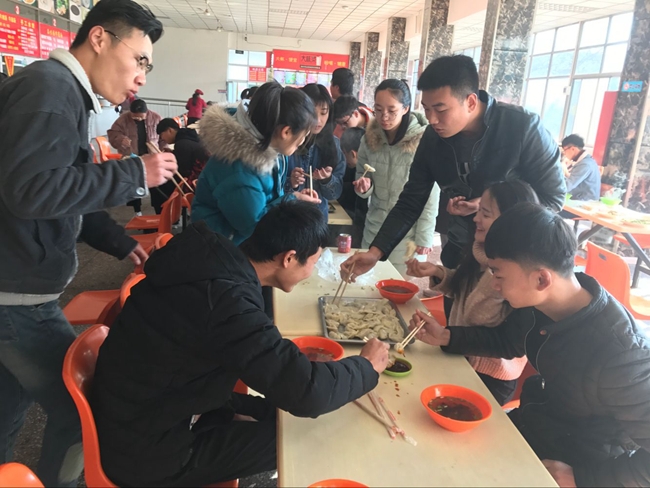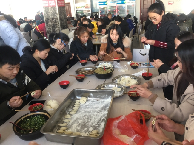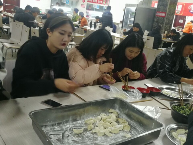 12月21日、22日中午,各系、各班分别在餐厅组织开展包饺子庆祝冬至活动。老师和同学们上下其手一起包饺子,活动现场热火朝天,欢声笑语。身体力行的包饺子,激发了青年学生学习中华传统文化的热情,在参与的过程当感受到了传统文化的魅力。