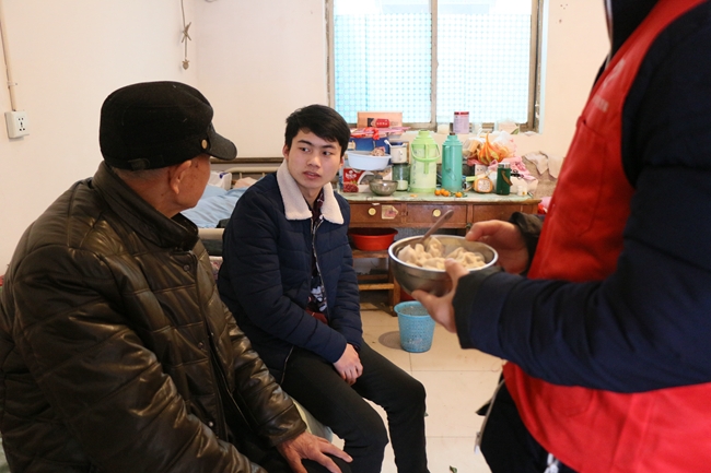 12月22日中午,信艺系志工部和青年志愿者大队的同学们来到福乐门敬老院,陪老人们度过一个快乐祥和的冬至。尊老、爱老、敬老、助老是中华民族的传统美德,在冬至当天,为了让敬老院的老人们感受节日的温暖。志愿者们为敬老院的孤寡老人带来他们亲手包的饺子,并同老人们聊天详细询问老人们的身体状况,了解他们的生活情况,并希望他们保重身体。老人们高兴不已,脸上洋溢着幸福的笑容。