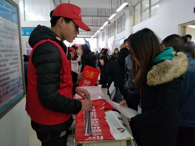 1月5日,是我院2018届毕业生双选会时间。为方便企业参会,院团委组织学生志愿者配合招生就业处和其他部门,做好企业参会人员接待和服务工作。虽然雪后天气寒冷道路湿滑,但志愿者们依然热情似火,校园内的主要道路和招聘会主会场内随处可见为参会企业人员和学生解疑答惑的志愿者们,他们以热情优质的服务为企业参会人员和讲解考试流程并引导学生进入考场。一系列温暖细致的服务举措赢得了参会企业和应聘学生的普遍好评。