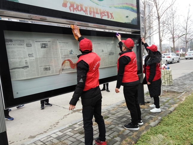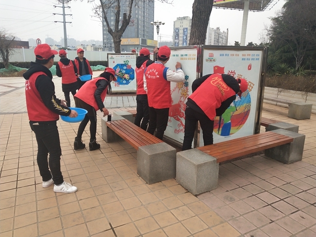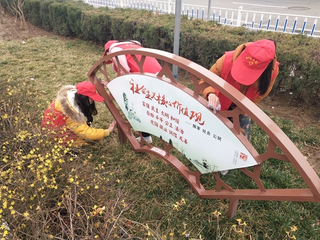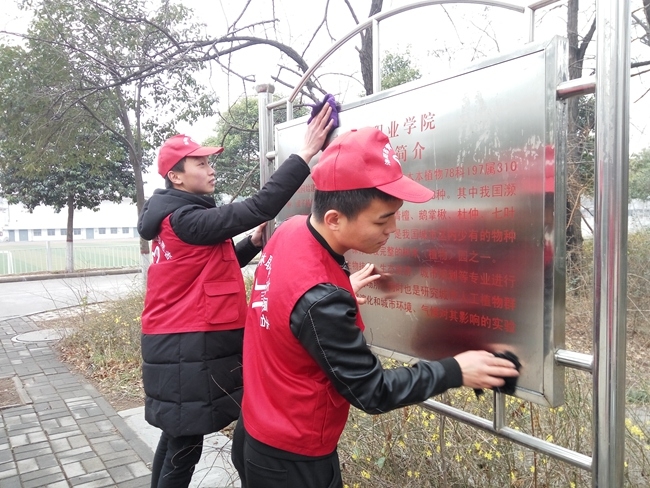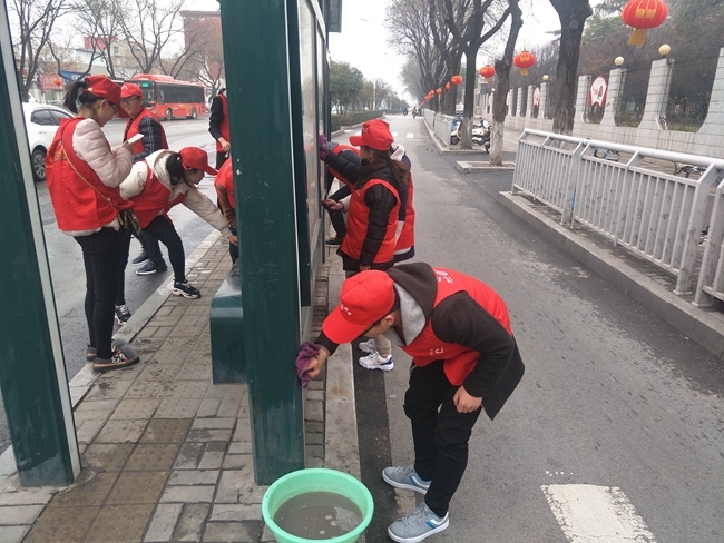 院团委开展“清洁校园 擦亮城市”志愿服务活动 作者:马丹丹 来源:团委 发布时间:2018-03-05 16:14:27 浏览次数: 次 【字体:小 大】 今年3月5日,是我国第56个雷锋日,院团委组织学生志愿者在校内外开展“清洁校园 擦亮城市”系列志愿服务活动。学生志愿者们利用中午休息的时间,分三组到校园内、周边公交车站、熙春广场开展活动。阴冷的天气丝毫没有影响志愿者们工作的热情,他们用自己的实际行动传承雷锋精神,诠释新时代大学生的良好风貌。 分享到: 【打印正文】