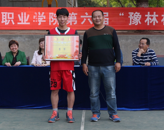 紧张激烈、丰富多彩的第六届“豫林杯”篮球赛于4月17日下午在学院篮球场闭幕,学生处、团委、各系相关负责同志出席闭幕式。