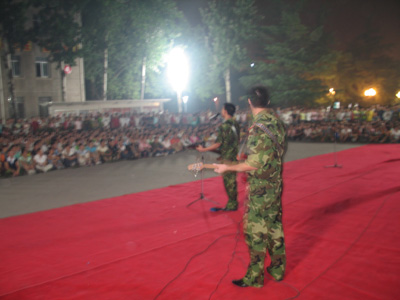 军民一家亲:驻洛某部到我院进行慰问演出 作者:团委 摄影:温石乐 来源:本站原创 发布时间:2005-09-10 17:42:39 浏览次数: 次 【字体:小 大】 9月9日晚,驻洛某部队舟桥连官兵来我校进行慰问演出。晚会上节目精彩纷呈,不时赢得观众阵阵掌声。我院师生也参加了演出活动,体现了军民鱼水深情。 分享到: 【打印正文】
