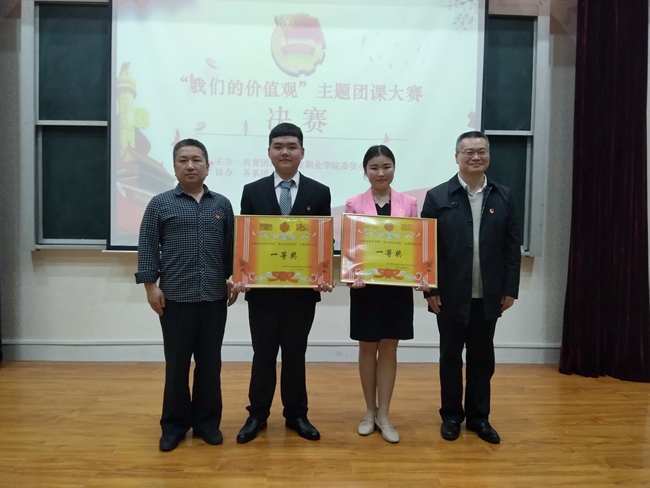 4月18日晚,由 院团委举办的“我们的价值观”主题团课大赛决赛在西阶梯教室隆重举行,团市委副调研员周志明、学校部部长郭兵一行亲临现场指导,学院副院长刘耀玺陪同参加。来自学院工会、招生就业处、团委、基础教育部、德育教研室、心理健康中心的有关老师出任评委。