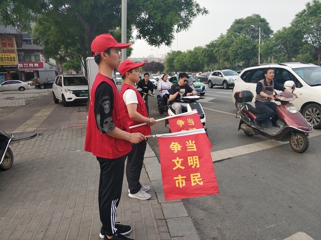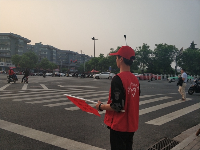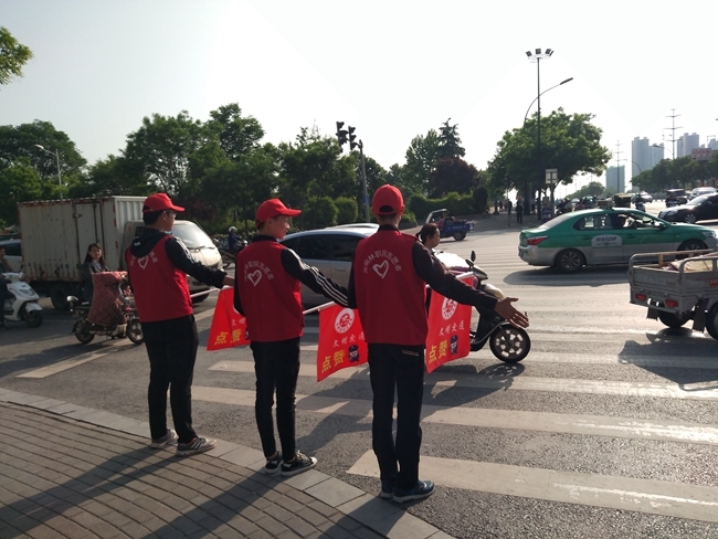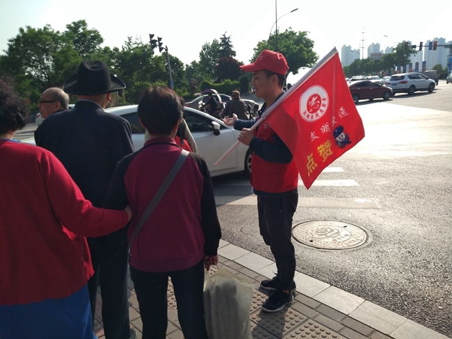 志愿者助交通,为文明洛阳增彩 作者:马丹丹 来源:团委 发布时间:2018-05-07 15:38:01 浏览次数: 次 【字体:小 大】 五一假期,适逢出行小高峰,道路交通压力大,院团委于 4 月 27 日、 30 日两天组织青年志愿者兵分两路分别到中州东路与新街交叉口和九都东路与新街交叉口开展文明交通志愿服务活动。志愿者们头戴小红帽、身穿志愿者红马甲,手持文明交通小红旗,认真按照红绿灯的指示劝导和制止行人及非机动车辆闯红灯、随意斜穿马路等不文明行为,引导市民遵守交通秩序,做文明洛阳人。 分享到: 【打印正文】