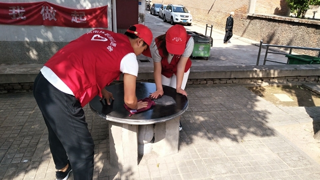 4月27日上午,院团委组织青年志愿者学生二十余名到学院南家属院和东家属院开展“清洁家园”志愿服务活动。志愿者们手持扫把、铲子、抹布等工具,分别对小区楼梯道、自行车棚、花 坛 及院内环境卫生等进行了综合整治和清理,小区环境焕然一新。