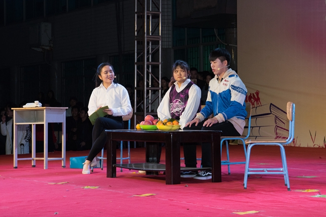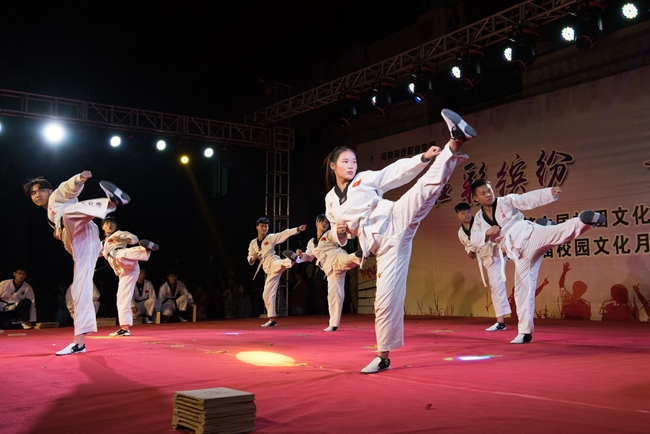晚会在动感时尚的街舞《Bang bang bang》中拉开序幕,晚会节目形式多样精彩纷呈。相声《单车问答》以幽默诙谐的方式呼吁同学们爱护共享单车文明骑行;乐队演唱《只有音乐才是我的解药》和流行街舞串烧《青苹果乐园》优美的旋律和唯美动感的画面赢得了观众的阵阵掌声和尖叫;教职工子女宋佳璇表演的朗诵节目《歌颂党》表达着少年坚定的共产主义信念;六月话剧社带来的小品《真假老师》以滑稽的剧情、夸张的演技让人捧腹大笑;大学生艺术团带来的歌舞《稻香》青春洋溢的杯子舞吸引了在场所有观众的眼球;跆拳道社带来的跆拳道特技表演激情澎湃;大学生艺术团汪大焜、郭丹茹等同学表演的古典舞《清风中》优雅的舞步和节奏将观众们带入了美轮美奂的仙境;由李志红老师带来的男生独唱《我们不一样》,袁光涛、樊梦楠、李晓帅等老师表演的舞蹈《美人琵琶》是本场晚会的一大亮点,老师们一改往日庄重严肃的教师形象,精彩的演唱、曼妙婀娜的舞姿赢得了在场师生的阵阵欢呼;由杨翠萍老师和经贸系合唱团参演的大合唱《我和我的祖国》作为本场晚会的压轴之作,生动阐释了当代青年对伟大祖国的热爱和感激之情将晚会再次推向了高潮。