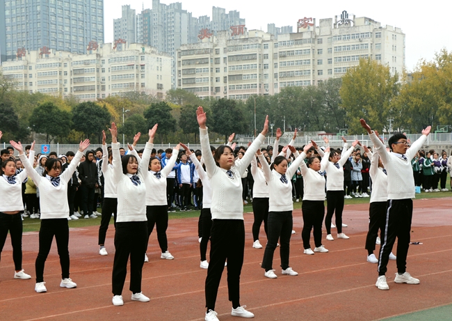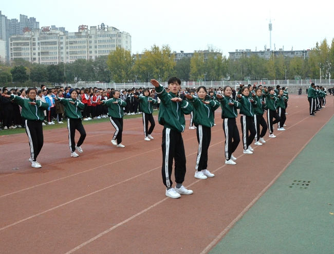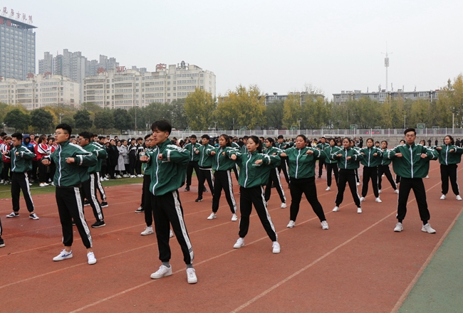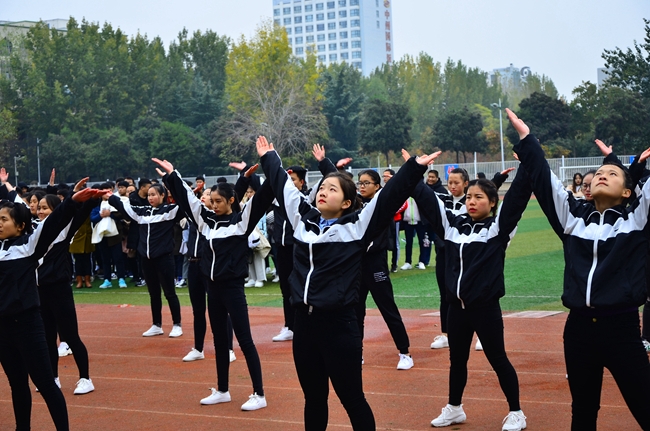 11月16日下午,我院2018级学生广播体操比赛在操场举行。学院党委书记吴国新、副院长刘宗利出席,学院办公室、工会、教务处、科研处、学生处、团委的主要负责同志以及体育教研室的部分教师担任评委,各系主要负责同志和18级新生辅导员观看了本次比赛。