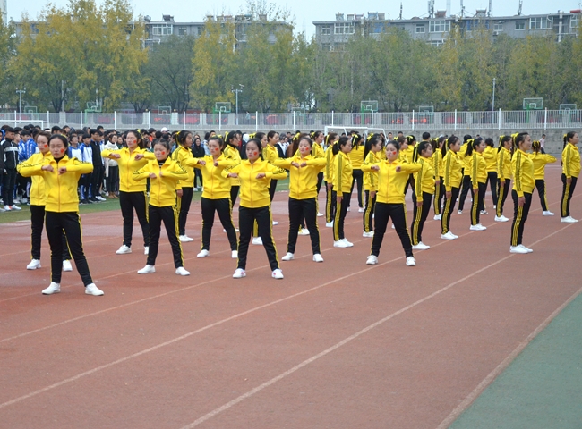 在观众热烈的掌声和欢呼声中,副院长刘宗利宣布2018级学生广播体操比赛正式开始。本次广播体操比赛历时一个多月,各系、各班积极响应、紧张排练,经过各系初赛的选拔,共有16个队伍进入决赛。比赛中各参赛队着装整齐、以响亮的口号入场,动作整体划一,伴随着激昂的旋律和动感的节奏,舒展腰肢,尽展青春的活力。