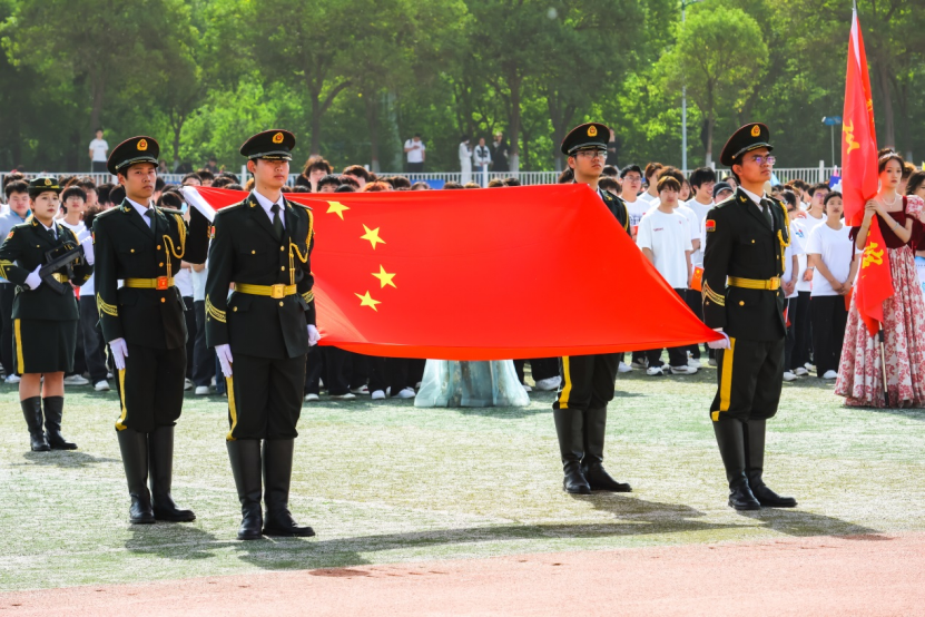 随后,举行了庄重的升国旗仪式,五星红旗在朝阳映照下冉冉升起。