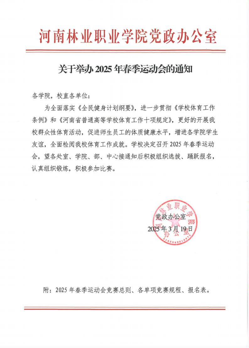 关于举办2025春季运动会的通知