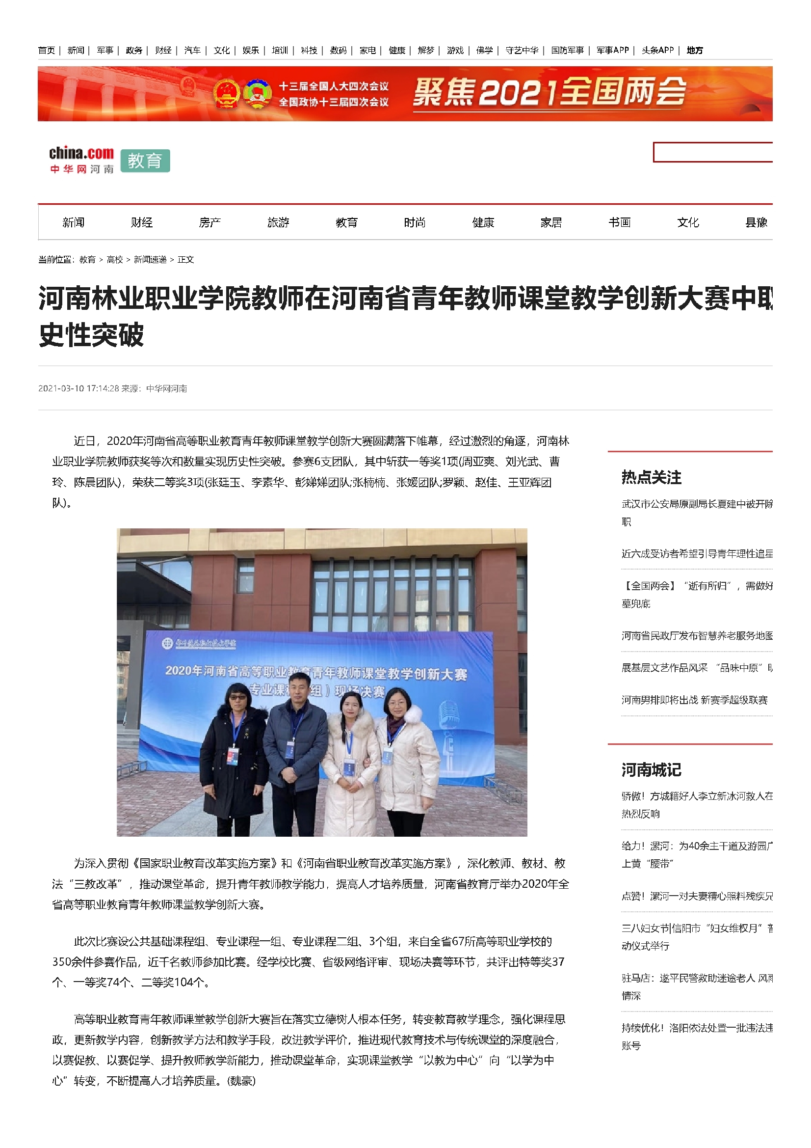 中华网:河南林业职业学院教师在河南省青年教师课堂教学创新大赛中取得历史性突破