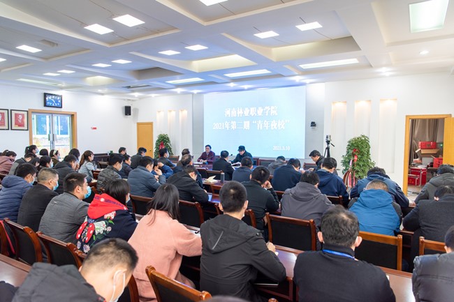 3月10日下午,河南林业职业学院举办2021年第二期“青年夜校”学习活动。行政党总支全体党员及45岁以下年轻干部共80余人参加学习。