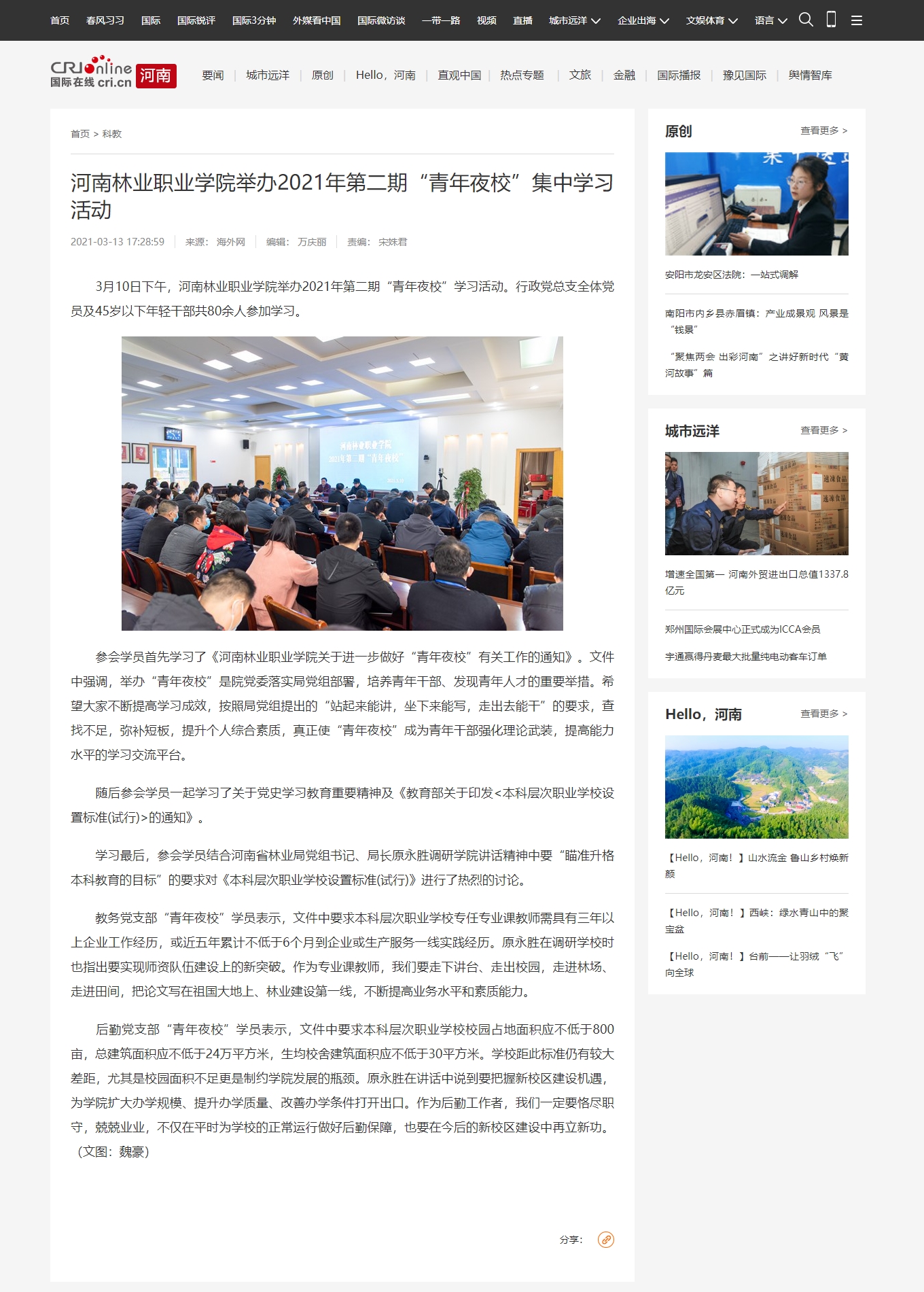 河南林业职业学院举办2021年第二期“青年夜校”集中学习