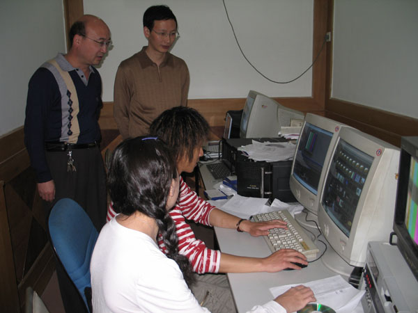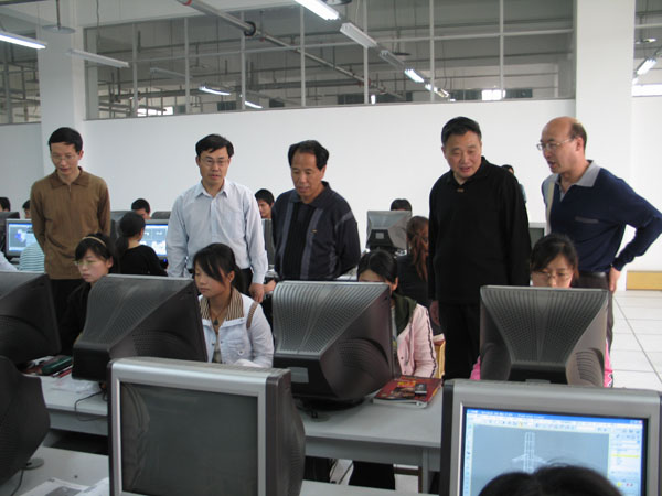 学院领导在学生机房观看学生动画制作