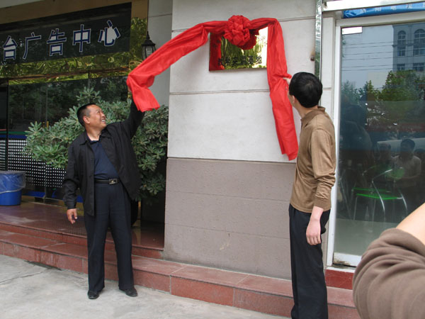 学院领导刘宗利和洛阳电视台领导郭胜伟为实习基地揭牌