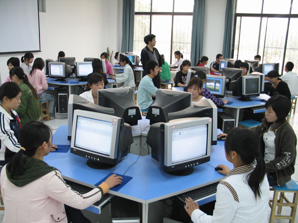 信息工程系老师在机房辅导学生上机