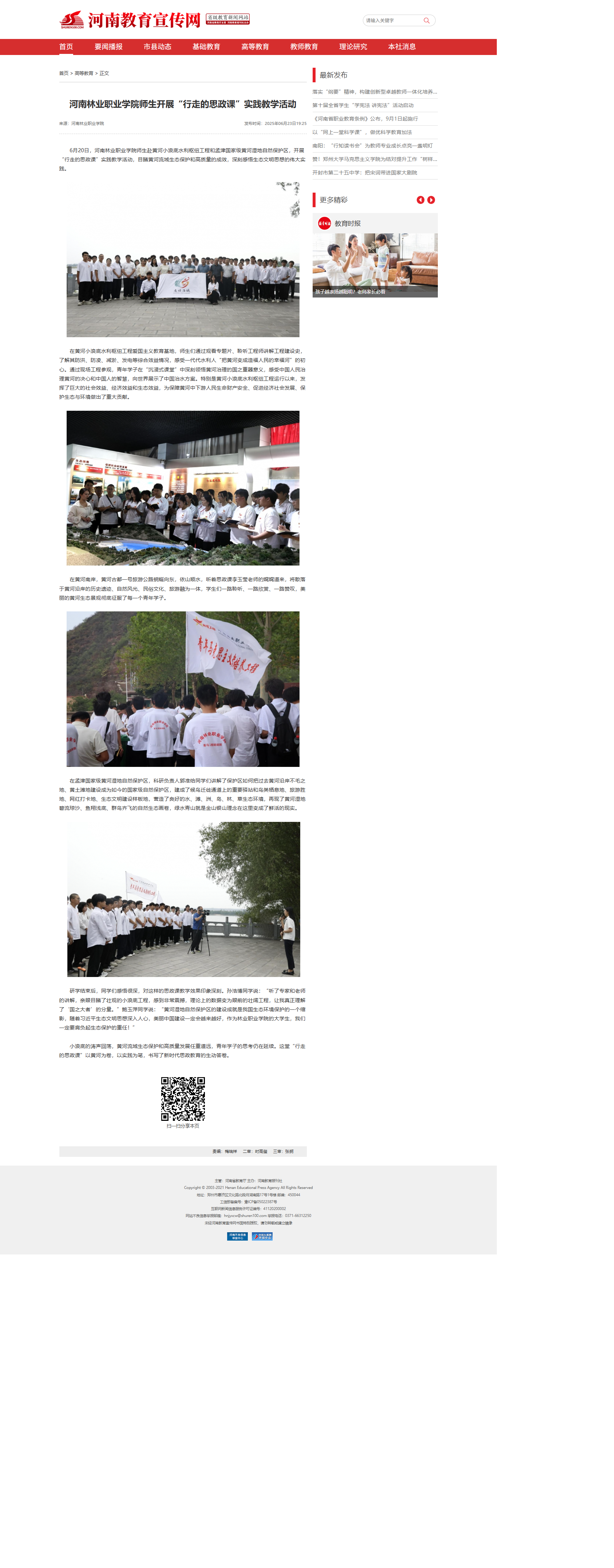 【河南教育宣传网】河南林业职业学院师生开展“行走的思政课”实践教学活动 作者:河南教育宣传网 来源:河南教育宣传网 发布时间:2025-06-24 15:38:37 浏览次数: 次 【字体:小 大】 分享到: 【打印正文】