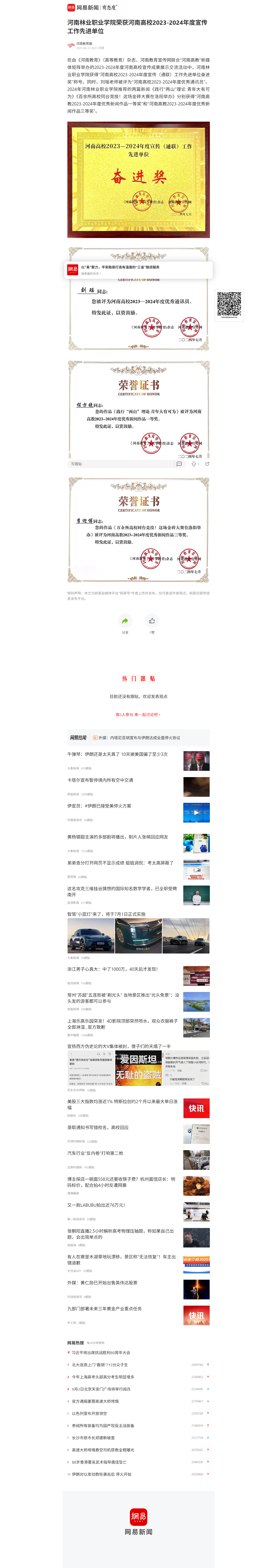【网易新闻】河南林业职业学院荣获河南高校2023-2024年度宣传工作先进单位 作者:网易新闻 来源:网易新闻 发布时间:2025-06-24 15:44:16 浏览次数: 次 【字体:小 大】 分享到: 【打印正文】
