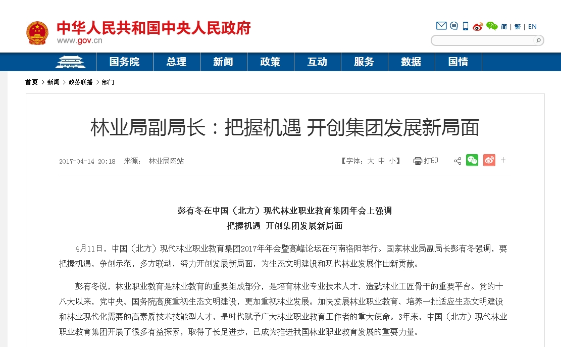 【中国政府网】林业局副局长:把握机遇 开创集团发展新局面