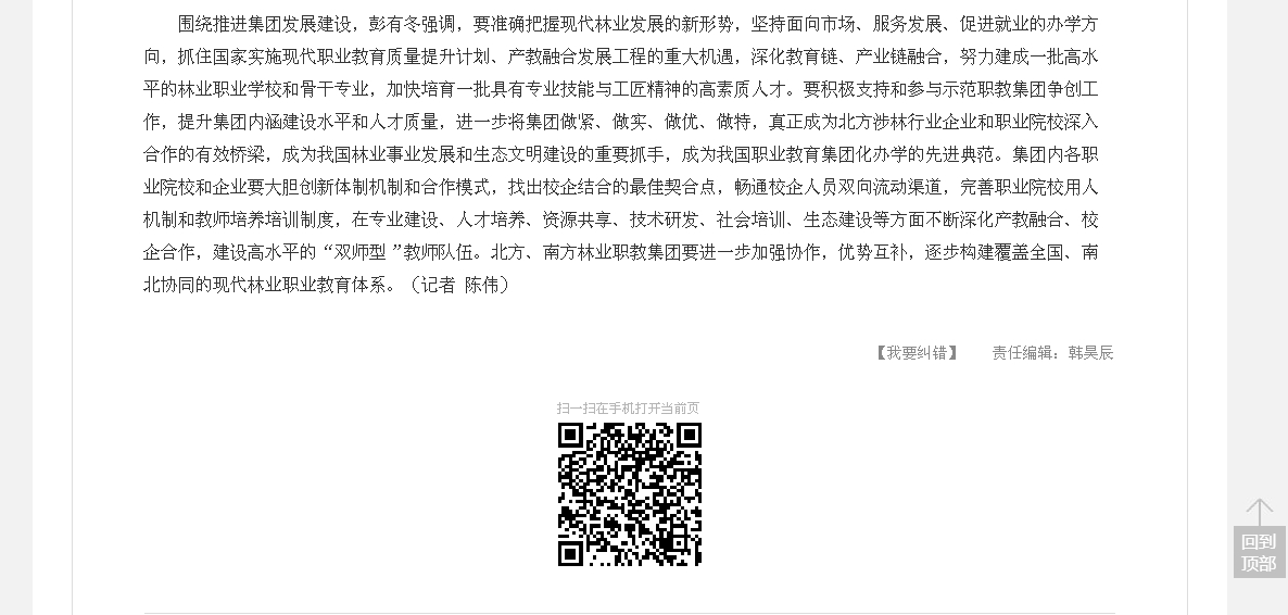彭有冬说,林业职业教育是林业教育的重要组成部分,是培育林业专业技术人才、造就林业工匠骨干的重要平台。党的十八大以来,党中央、国务院高度重视生态文明建设,更加重视林业发展。加快发展林业职业教育、培养一批适应生态文明建设和林业现代化需要的高素质技术技能型人才,是时代赋予广大林业职业教育工作者的重大使命。3年来,中国(北方)现代林业职业教育集团开展了很多有益探索,取得了长足进步,已成为推进我国林业职业教育发展的重要力量。