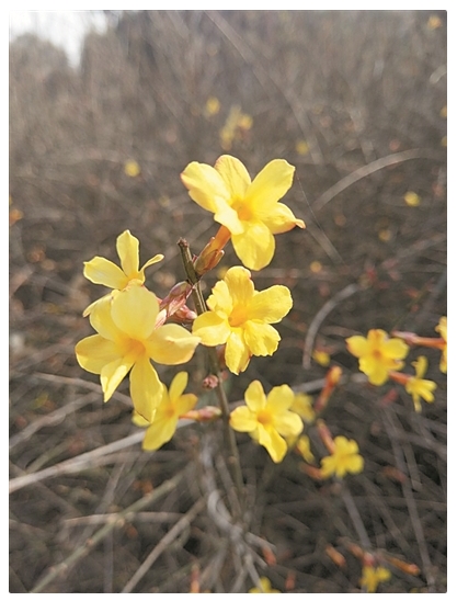 它又名迎春、黄素馨、黄金条、金腰带等,在冬末初春时节开放,端庄秀丽,历来为人们所喜爱。