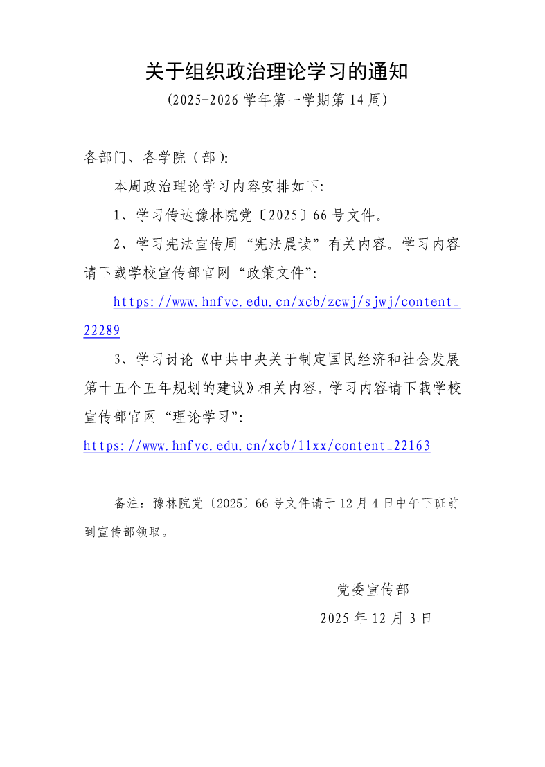 2025年政治理论学习(2025-2026学年第一学期第14周) 作者:党委宣传部 来源:党委宣传部 发布时间:2025-12-04 08:24:51 浏览次数: 次 【字体:小 大】 分享到: 【打印正文】