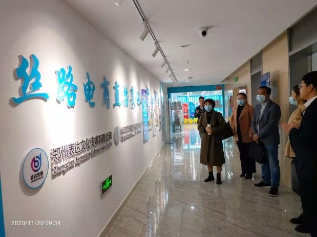 11月20日上午,经贸系书记李继东、教学主任张淑英、洛阳市电子商务协会会长梁铁旺,市营电商教研室主任孙长平及电商专业教师侯杨杨、田甜一行5人,前往郑州市郑州表达文化传媒有限公司丝路电商直播基地和兑花花无敌主播生态直播基地进行考察交流。