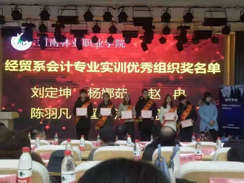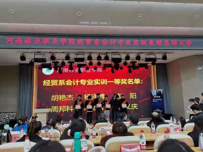 质量是生命线,教学质量就是专业存亡的生命线,由于疫情原因,新生今年17周的教学任务必需在8周时间推完。如何解决时间紧、任务重这个突出矛盾,保证教学质量在短时间内不缩水是头等大事。经贸系为提高教学质量,从新生入校开始,推出报团取暖----课程团队共商共建,充分利用校企合作企业资源,线上线下同推,竞赛和教学紧密结合的教学模式,经过一学期的实践收到良好效果。为鼓励该模式的推进,特于2020年12月29日下午4:30在西阶梯教室举行经贸系会计专业实训表彰总结大会,对本次改革试点中表现突出的团队和个人提出表彰,并将做法总结汇报分享。参加会议的有河南林业职业学院副院长刘宗利老师、教务处处长行红明老师、经贸系书记李继东老师、教学主任张淑英老师、会计教研室主任金鑫老师、教学秘书石珺老师、会计教研室全体无课老师、专职班主任,各系部教学主任、退休老教师,兄弟院校洛阳职业技术学院会计学院教学院长王长生教授以及合作企业方代表人员。