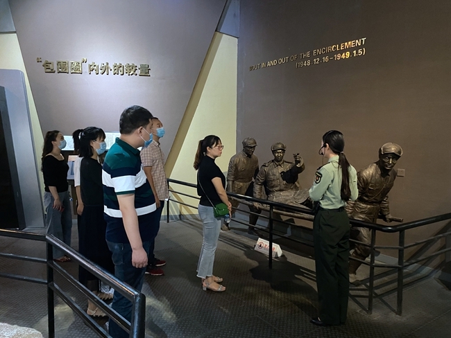在永城淮海战役陈官庄纪念馆,团干部们怀着无比崇敬的心情瞻仰了烈士纪念碑,参观了淮海战役纪念馆、烈士事迹陈列馆和烈士陵园。跟随纪念馆讲解员的生动解说,团干部们仿佛回到了淮海战役那段浴血奋战、英勇革命的峥嵘岁月,大家聆听着老百姓倾其所有支援前线人民解放军的感人故事,无不被军民鱼水亲如一家的家国情怀所感染,无不被革命先烈英勇无畏的革命精神和不屈不挠的革命意志所触动。