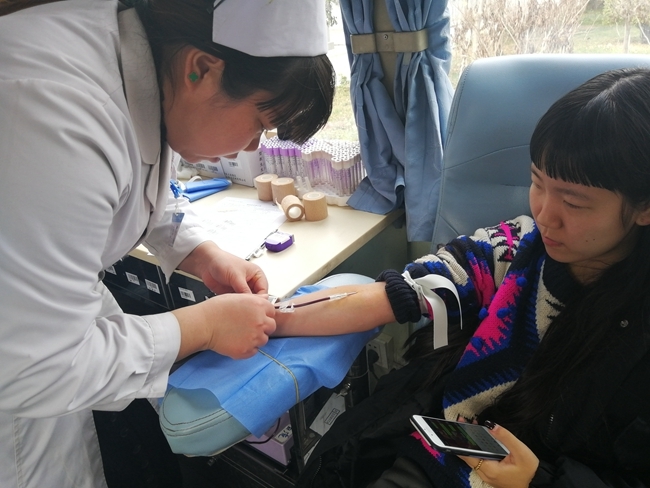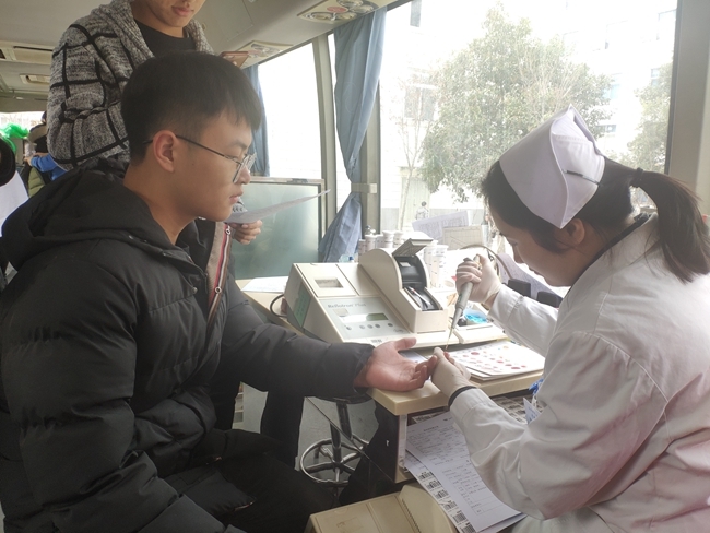 12 月 7 日,我院团委联合洛阳市中心血站,在学院超市门口进行义务献血志愿活动。为期一天的义务献血活动,吸引了广大师生的踊跃参与。