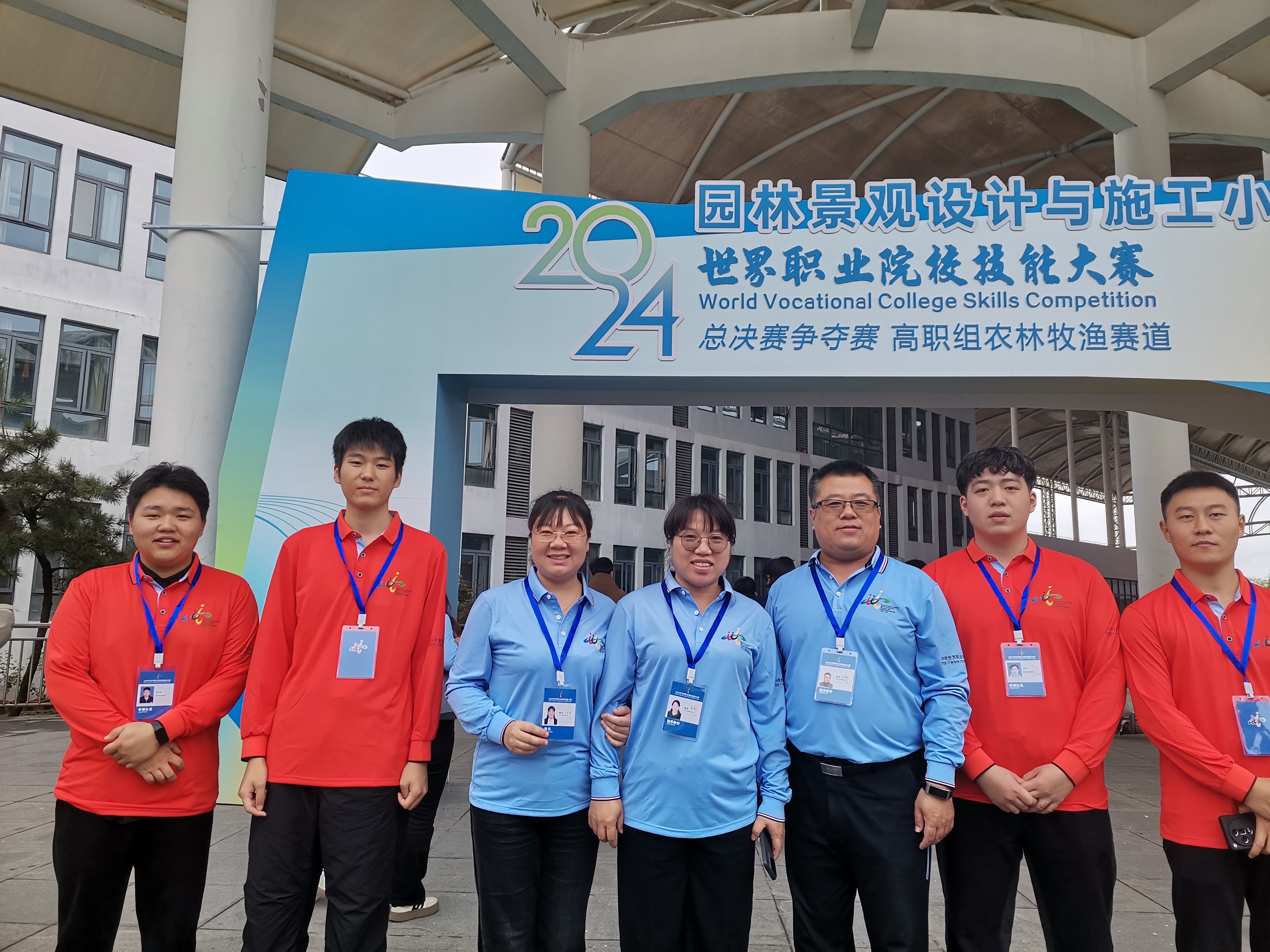 10月30日,2024年世界职业院校技能大赛总决赛争夺赛农林牧渔赛道园林景观设计与施工赛项在上海农林职业技术学院落下帷幕。由我校园林园艺学院刘军、唐敏老师指导,园林技术专业应往届学生罗焱、郭丰硕、李昂、王海港组成的参赛队摘得全国比赛银奖,实现了我校在全国职业院校学生技能大赛成绩上新的突破。