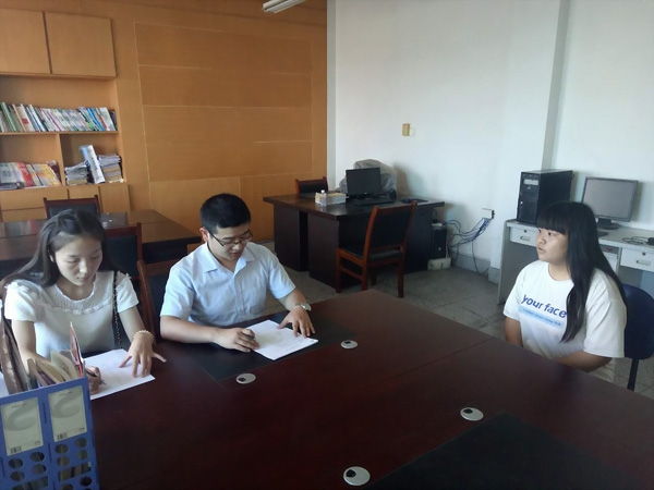 2016年09月07日下午四点中国邮储银行洛阳分行联合委托河南锡润商务咨询有限公司,在我校经贸系电子商务市场营销教研室举办了“银行大堂经理招聘会”。河南锡润商务咨询有限公司分管主管李明为我院经贸系20多名学生进行了现场应聘。
