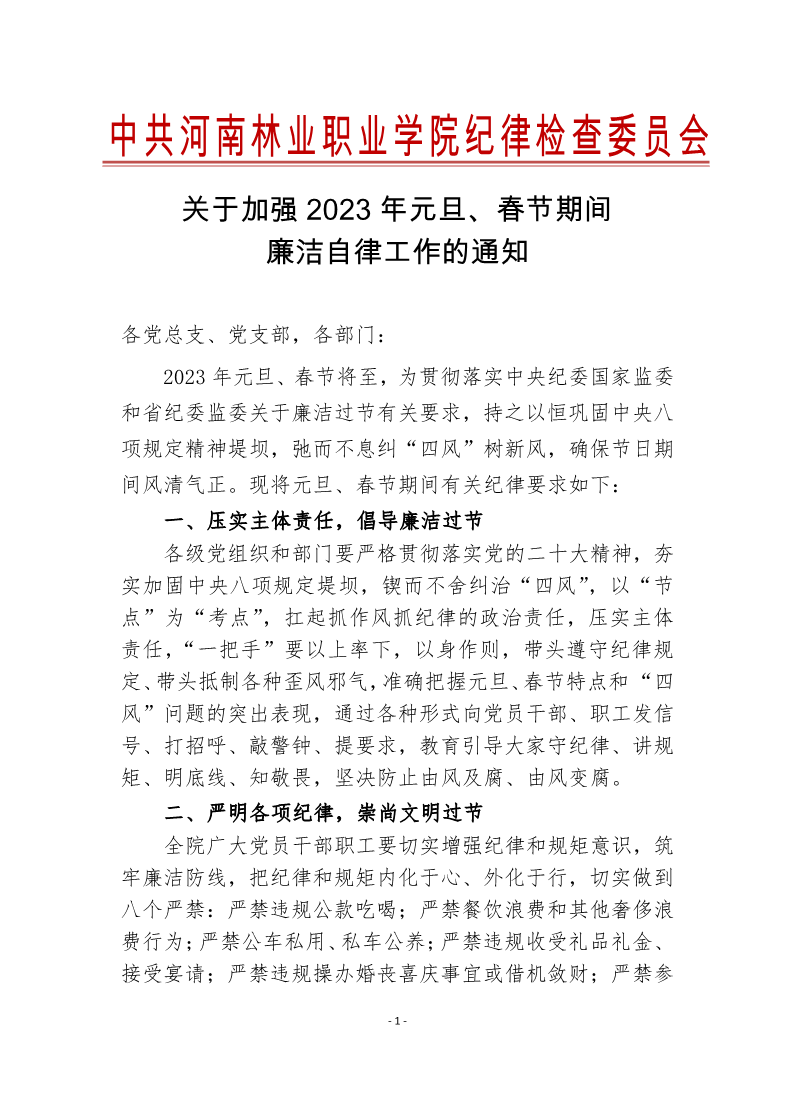 关于加强2023年元旦、春节期间廉洁自律工作的通知