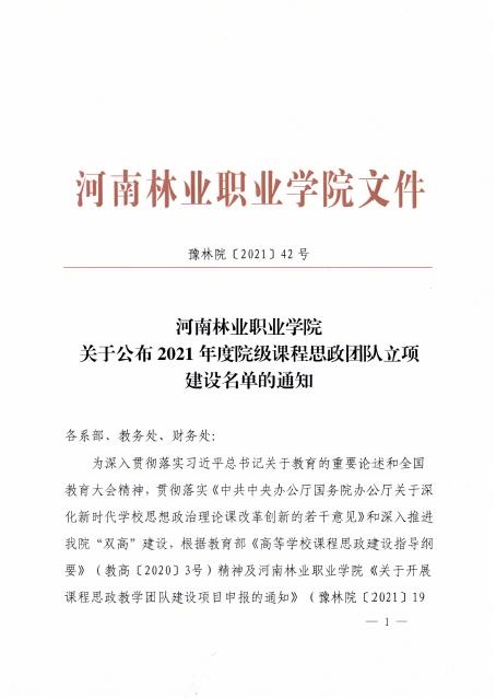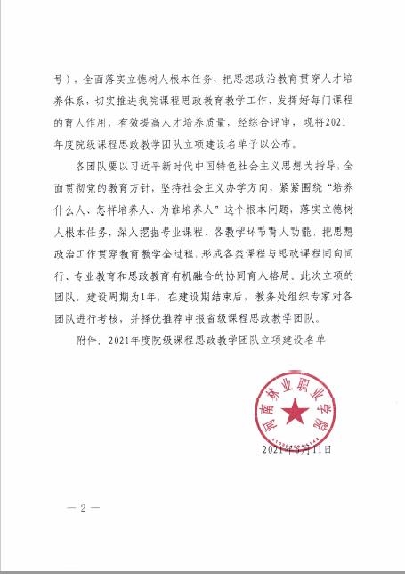 关于公布2021年度院级课程思政团队立项建设名单的通知