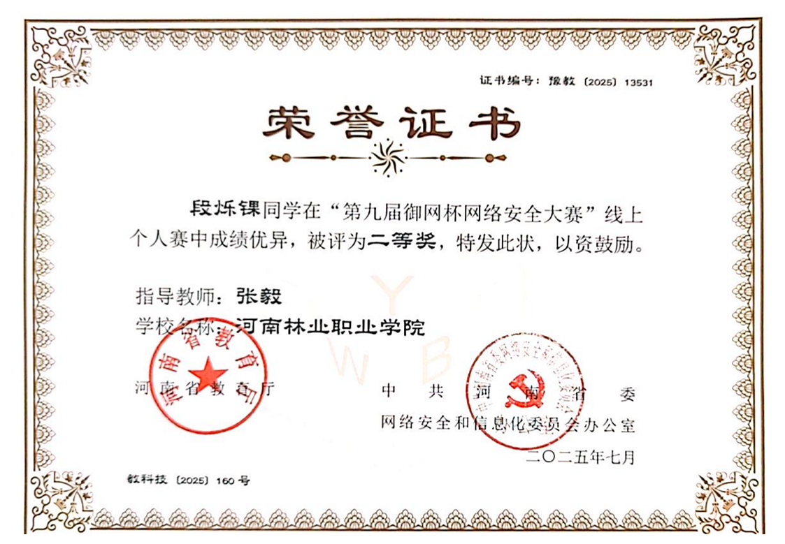 第九届御网杯网络安全大赛一系列证书