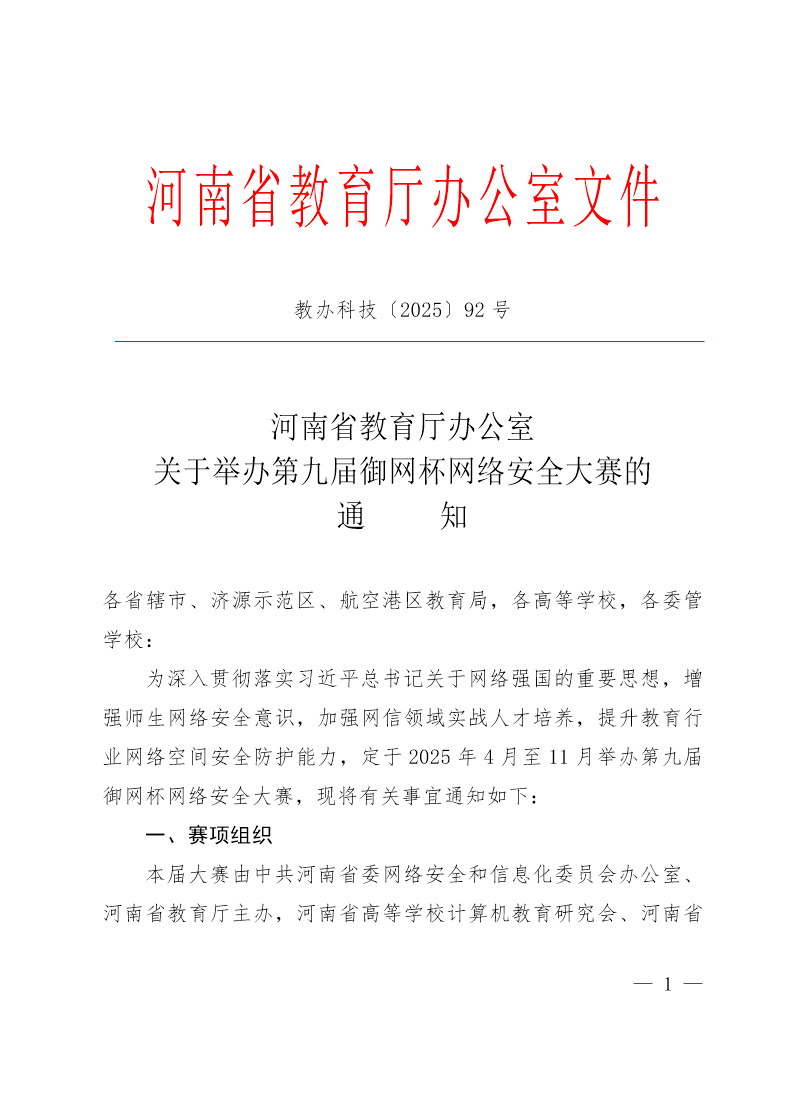 关于举办第九届御网杯网络安全大赛的通知