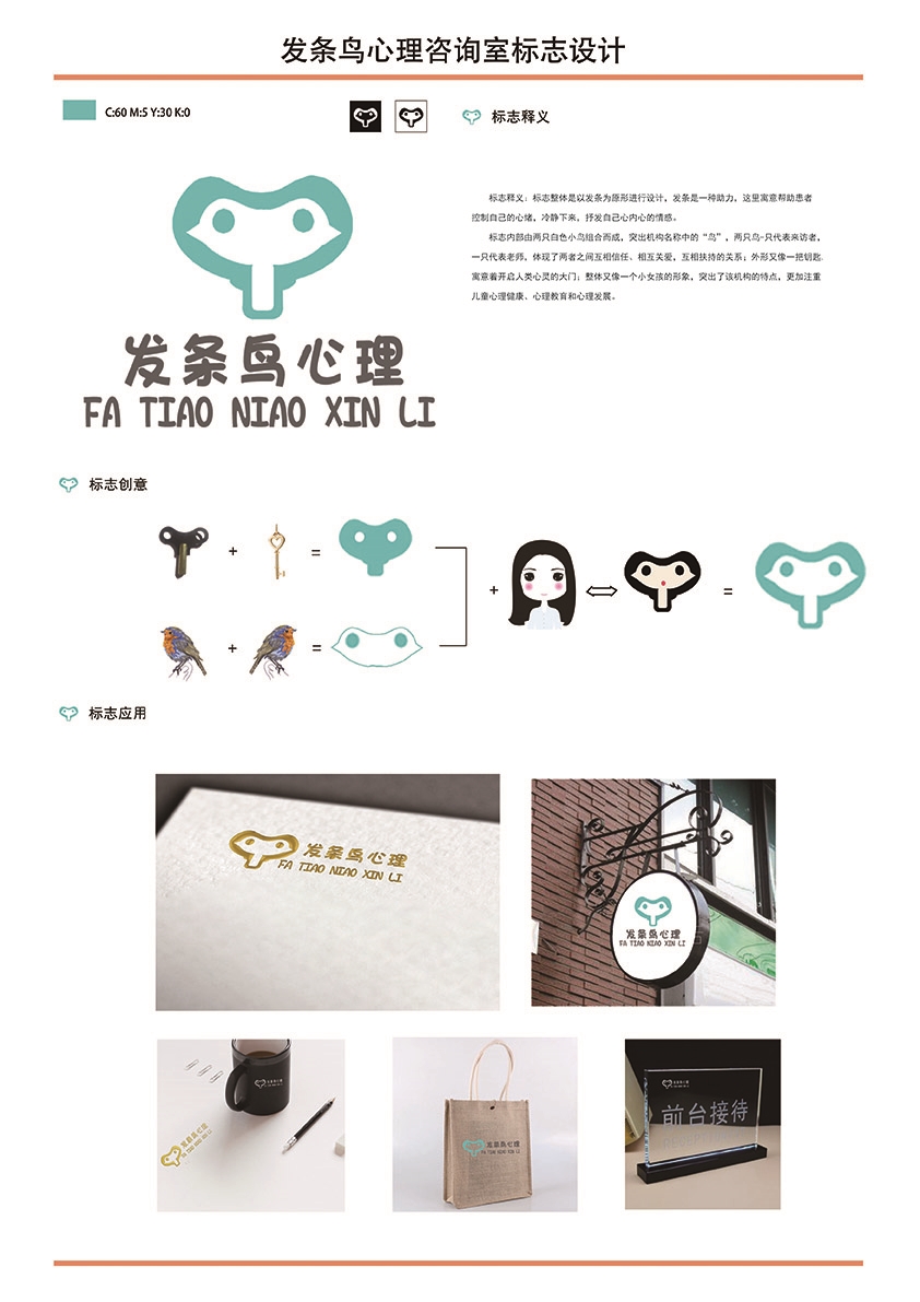 金奖作品:《发条鸟心理咨询室》标志设计,学生:杜建华 ,指导老师:闫晓萌